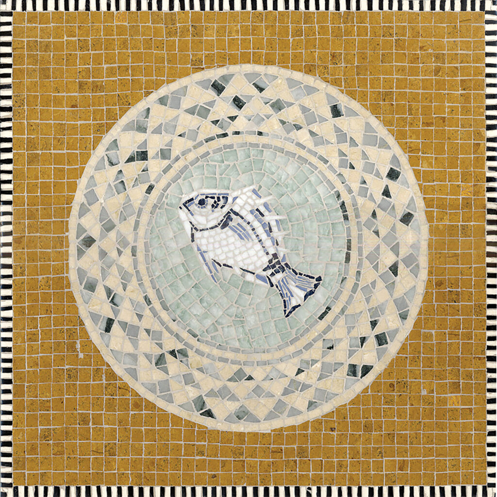 1 15/16″ Wicker border, a hand-cut tumbled mosaic shown in Greystoke, is part of the Tissé™ collection by New Ravenna.
