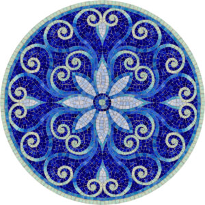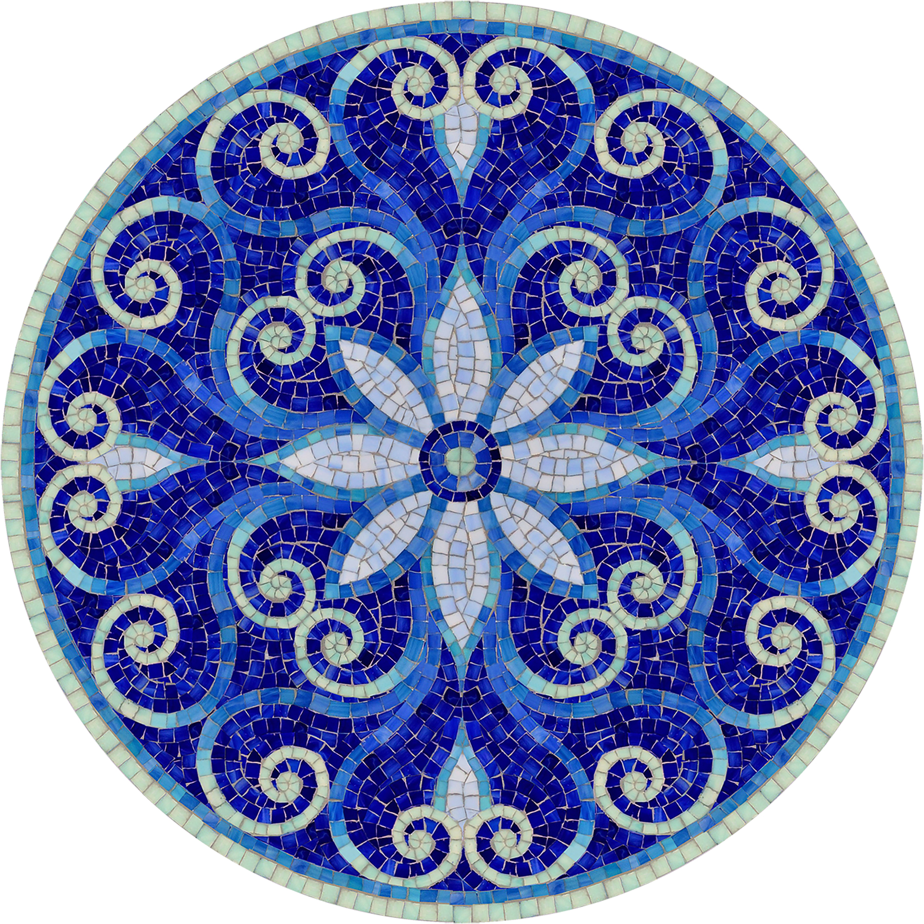 Custom Natasha Medallions & Rug shown in Covellite, Amazonite, Blue Spinel, Iolite, and Lapis Lazuli for New Ravenna.