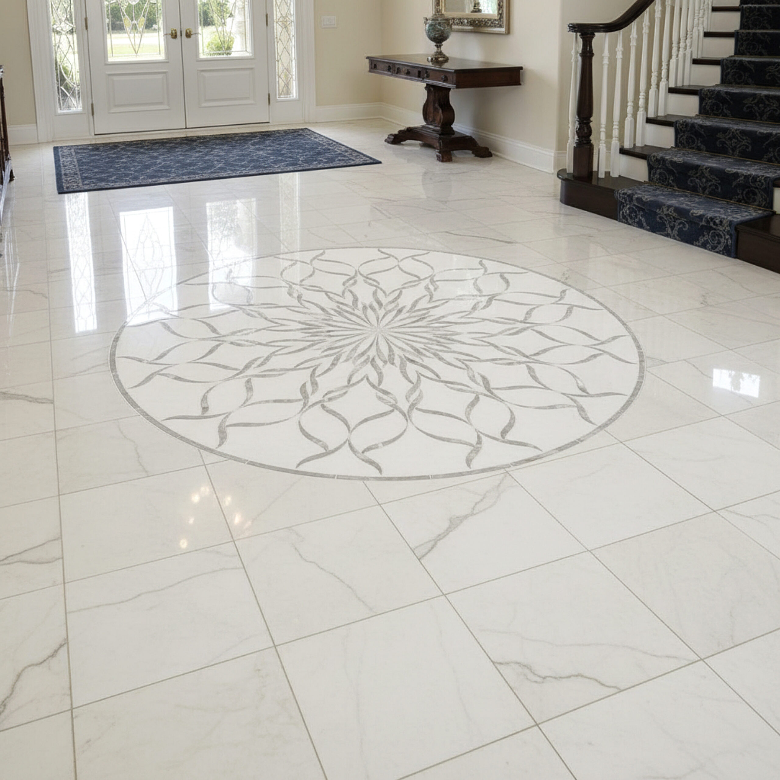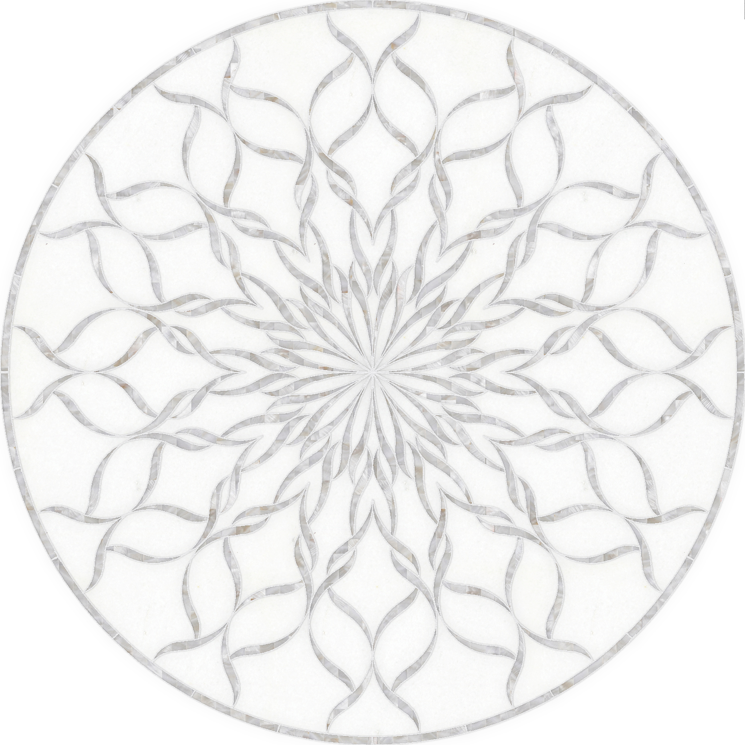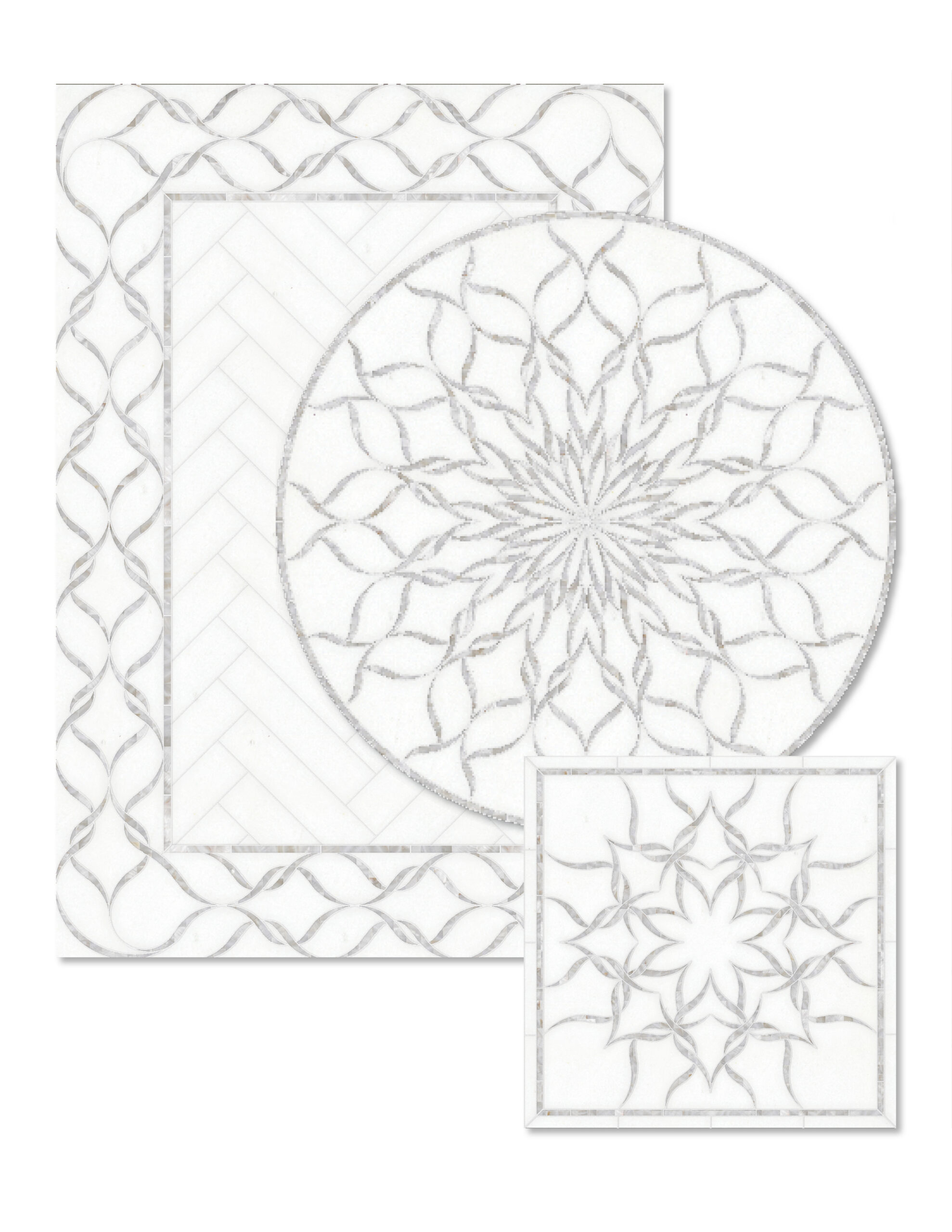 Custom Sophie Medallions & Rugs shown in honed Thassos and Shell.