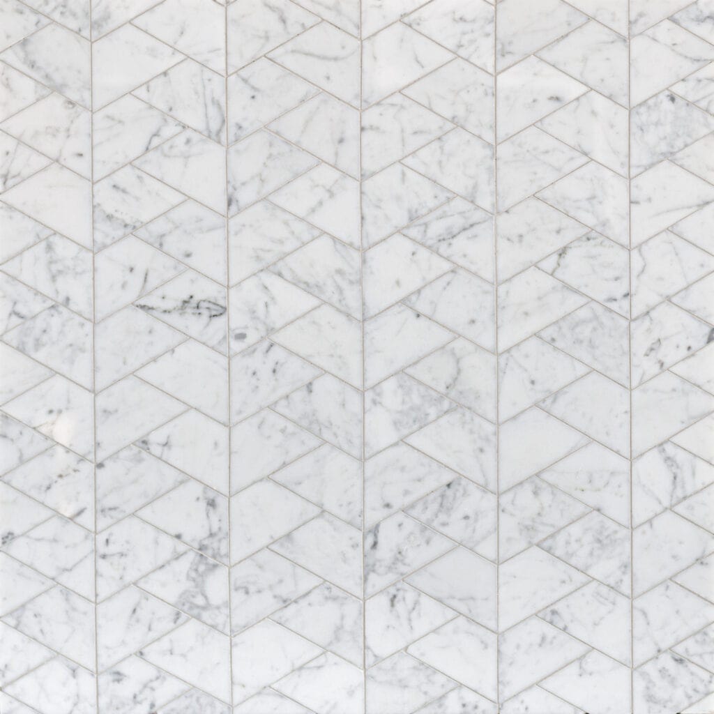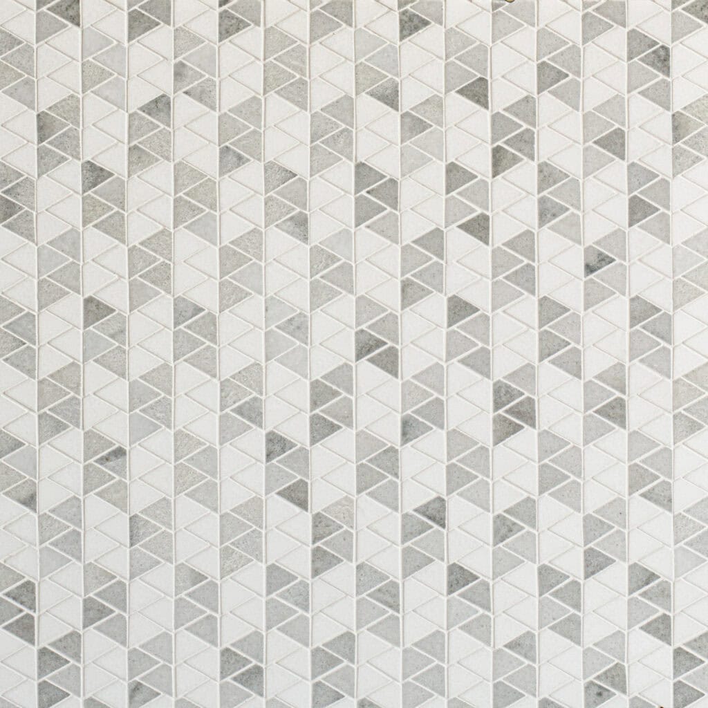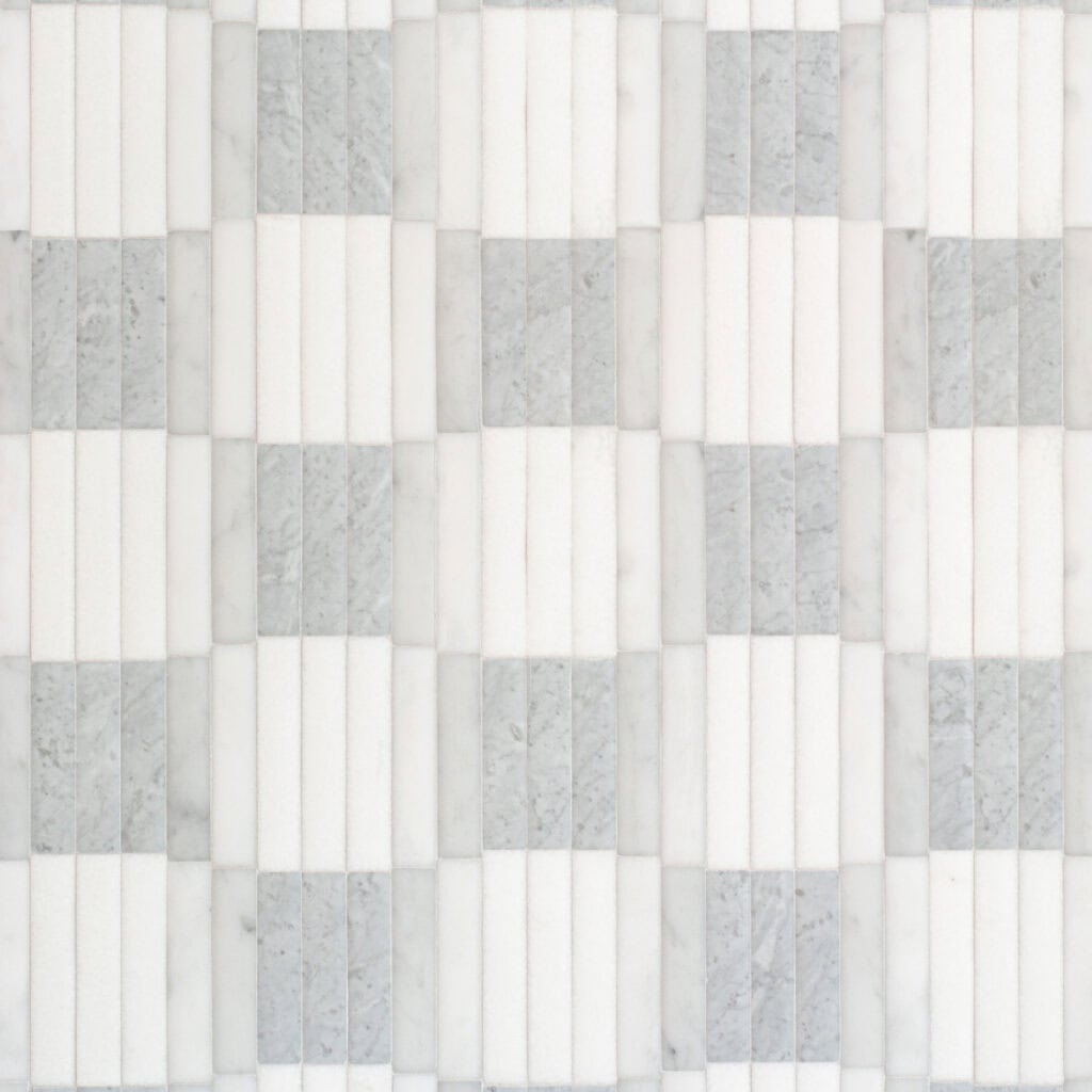 Bryce in honed Paperwhite, tumbled Thassos, and Shell from the Studio Line by New Ravenna.