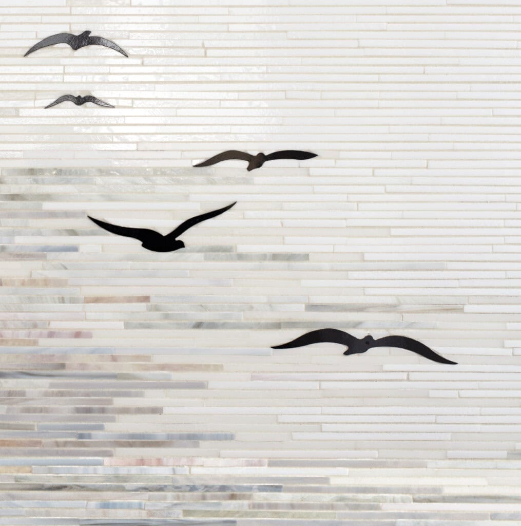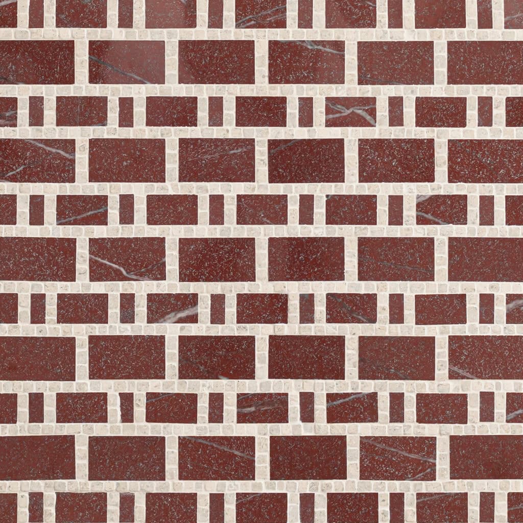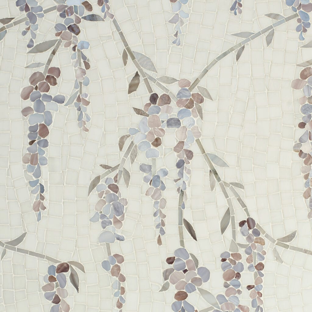 Bryce in honed Paperwhite, tumbled Thassos, and Shell from the Studio Line by New Ravenna.